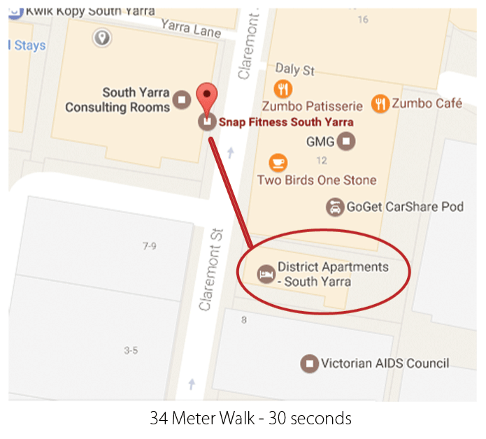 District hotel apartments and Snap Fitness in South Yarra are proud to offer our guests 24hr access to their state-of-the-art gym facilities. located in Yarra Walk.